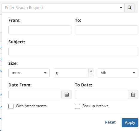 - The list of messages might be very long and hard to manage. Use Enter Search Request box above this list to look for items matching the certain criteria. You can search for emails in all user mailboxes with All Users option selected in search box.